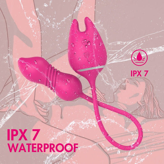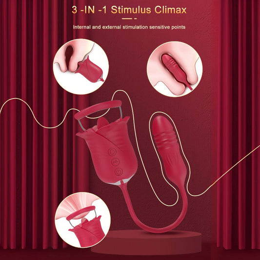 Teleskopischer Vibrator mit Rosenblüten-Saugfunktion