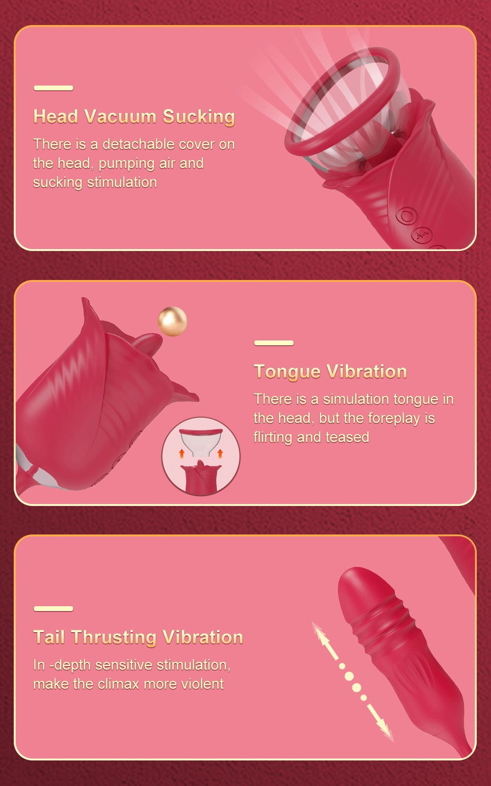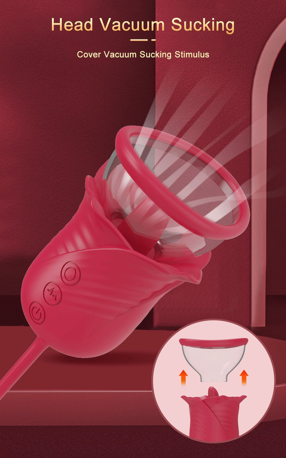 Teleskopischer Vibrator mit Rosenblüten-Saugfunktion